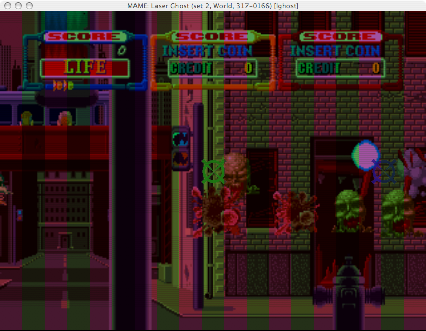 issue confirmed: notice, on the right, where the shoot is compared to the blue crosshair the problem dates back at least to MAME 0.120 |