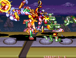 Visible in attract mode: - at the green alien in the intro - about 30 seconds into the 2nd demo play |