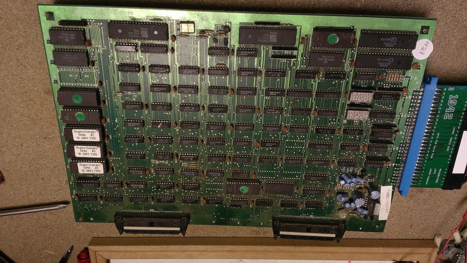discovered through this ebay post http://www.ebay.com/itm/1942-SUPERCHARGER-1984-Capcom-Guaranteed-working-non-JAMMA-Arcade-PCB-Rare-/111288230323?hash=item19e94ba1b3:g:cIUAAOxy-WxTDRm9 |