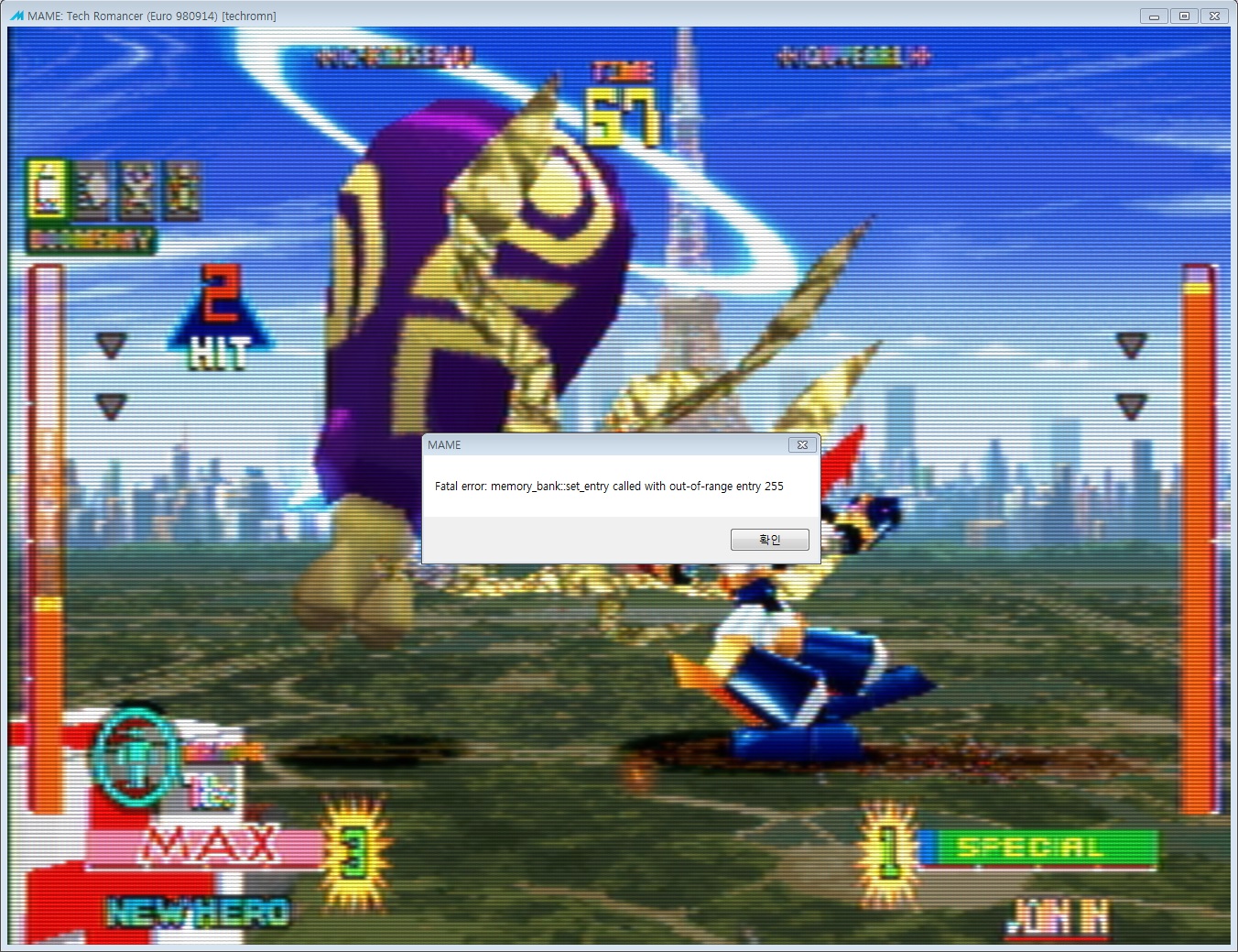 | Description | When the play game and during fighting against first opponent. the popup 'Fatal error: memory_bank::set_entry called with out-of-range entry 255' appears and the game crashes. | ||||