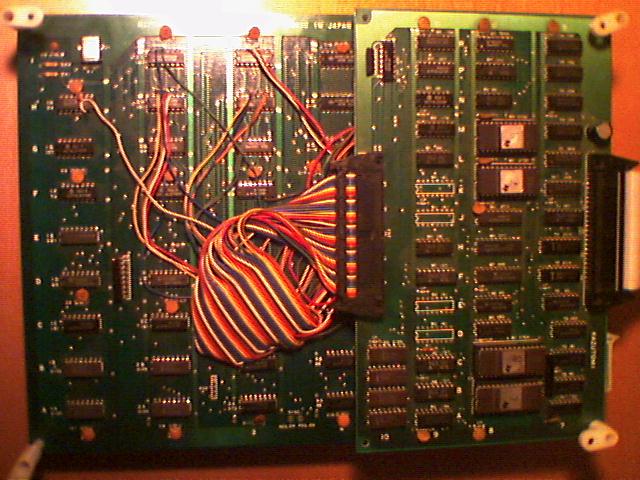 For the sake of documentation, Exciting soccer bootleg should be placed in champbas.c. Me and f205v have dumped it 2 years ago (same dump as the current one), we documented the hardware saying: Alpha denshi co. LTD made in Japan cpu board 58AS1 Display board 58AS2 Voice board 58AS3 KAZUTOMI board 1x Alpha8201 (CPU board) 1x AY-3-8910 (CPU board) 1x Sharp Z80ACPU (CPU board) 1x Sharp Z80ACPU (VOICE board) 3x 2764 (CPU board) (1-2-3) 3x 2764 (VOICE board) (a-b-c) 2x 2764 (DISPLAY board) (4-5) 1x 2764 (daughter board kazutomi) (6) 2x 2732 (daughter board kazutomi) (7-8) The hardware is very different from Exciting soccer 1 and 2. Most important on board there is an Alpha 8201 mcu instead of the 8301 one. I have just found that Exciting soccer (bootleg) is a conversion from Championship Baseball 2, look for yourself: http://www.citylan.it/exctsccb/PCB%20component%20side.jpg [citylan.it] http://www.crazykong.com/pcbs/A%20-%20F/ChampBaseball2.pcb.html [crazykong.com] I attach a (bad) pic of the kazutomi board, as you can see there is a lot of flying wires from that board to the original display board. So Exciting soccer bootleg should be placed in champbas.c Also the frequencies of the bootleg are wrong since they should be identical to the champbas.c games. As for the following comment in exctsccr.c source: "I'm using the ROMs from exctscc2, national flags are wrong (ITA replaces USA)" it's an original bug, the pcb does the same (forget the colours, I wired blue and red wrong on the pcb, but it's enough to see the original bug). Kazutomi forgot to patch it. The roms are good and have their original stickers (not modified) |