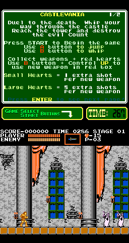 | Description | Colors of the first enemies you encounter are wrong. This may not be a bug but if you compare this one with both PlayChoice-10 and NES versions of Castlevania, the enemies don't have the same colors at all. This should be compared with the real cabinet... | ||||