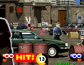 | Description | There's a vertical line of garbage on the door of the "Shoot 14 criminals" stage (let it run through attract mode). | ||||