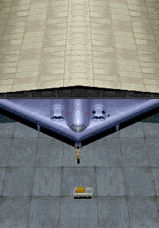 In attract mode, there is a priority error where a stealth bomber is coming out of a hanger. This has been fixed with a hack to push the plane in a upper layer, however what's probably missing is an alpha blending effect to drop a shadow over the plane while it is under the roof. |