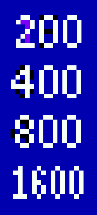 Ever since the recent Pooyan changes in 0.122u8, the triple digit points awarded from hitting enemies now have garbage behind them - possibly other digits? Lord Nightmare: could be two plane roms from different sets? the foreground is clearly 200,400,800,1600 but the bg looks like 150,300,400,1600 |