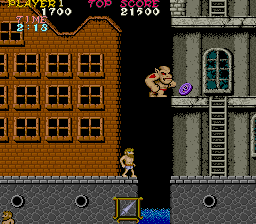 This happen on real pcb too. - Roberto Fresca Here in Brazil I saw several bootlegs and gng is one of them. That bug appears in all arcades that I saw. has many other bugs that also appear: * the times zumbis appear in the air. * In stage 6 if before struggling with the dog demons you jump in the left lower of the screen does with that those demons are walking in the air. - Augusto Also note these more ingame bugs : * On the flame bridge level with sort of dragon at the end, if you wake him up and go back fast to the left, the dragon disappears and the key will fall (you'll also notice that the flames have "frozen" and that they don't affect you anymore) * On the next level with ONE demon (the one which gets your girlfriend in the intro), if you wake him up and fall down by avoiding the 2 moving platforms, the demon might also disappear (which causes the key to fall) I'm sure that there are many other bugs. - stephh |