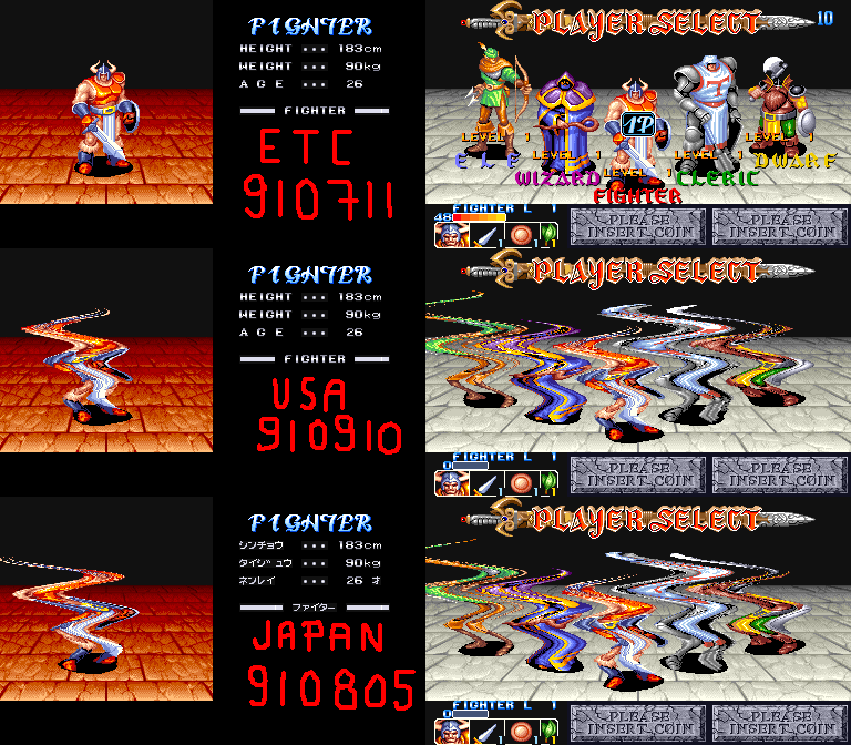 When I've reported the KOD credit sequence background bug that is still present in Mame, I checked the revision of that pcb and it was "910731 ETC" (you can see it in the videofile I attached when I made the report of the 01016bug) . That World revision is different from the one we have in Mame and it has the same behaviour and the updates present in Japan and Us revisions but unfortunately I can't check if that pcb is an original or a bootleg. The only thing I know, is that the pcb is still alive and working at ours days from the half '90 years into an arcade of a little country town where I pass sometimes my vacations. Kold and I suspect that It could be the same of the bootleg one not working in Mame (that has the same "910731 ETC" revision). Therefore we should investigate if a "910731 ETC" really exists on a original pcb of simply bootleggers have changed the revision of a Japan/US dead board. |