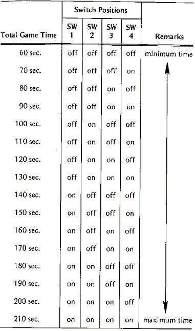 | Description | The game time DIP switches seem to have incorrect times. According to the manual, the timing should be adjustable in 10-second increments from 60 to 210 seconds, but in MAME the settings are from 73 seconds to 233 seconds. Could there be a more underlying timing issue? Tank 8 has no visible countdown timer. | ||||