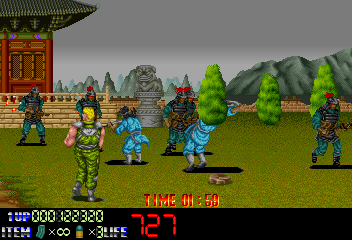 This bug should be reopened, as it happens again in 0.163. Also, it can happen in other stages if an enemy comes in the foreground - tipically with a close range attack - and there are other sprites in the background. I'm uploading a screenshot of level 6, where the ninjas can jump forward and frequently cause the problem. Later edit: uploaded also save states. Regression in 0.147u3. |