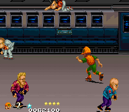 it's an interrupt timing issue I think, the driver currently toggles 2 interrupts with even spacing when in reality they should probably relate to specific points in the screen (vblank in/out maybe) this causes the spritelist to be updated at the wrong point, and the glitches to occur. If you simply swap them over you get very jerky video update instead. it could of course happen to an extent on the real PCB, as it does on B.Rap Boys, but still, the current interrupt timing is a hack. |