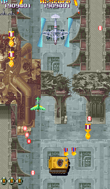 Description The following glitch happened to me only once in the official .127 version of mame and I have not been able to reproduce it ever since in any version (0.127 or later), I will post this here however, just in case someone has seen something like that. In level 5, in the part which looks like a factory, there are several tank producing facilities. Destroy the first 3 or 4 VERY QUICKLY and a couple of bi-choppers appear. When the glitch happened, the 1st bi-chopper appeared as a glitched half of its true form, dissapearing a while after. To my dissapointment, I wasn't prepared to capture this in a snapshot. The attached one only indicates the point the bi-chopper appears and IT IS CORRECT by all means. Save states WERE used and I suspect this being the cause of the glicth, however there were never such problems in a cps2.c game (unlike toaplan2.c), although there IS a Save States Warning in the driver. Anyway, feel free to close this report at your convenience.