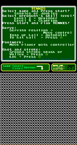 This is caused by the fact that the PC10 driver defaults to using all 4K of RAM allocated to the PPU nametables when in fact there's only 2K of RAM on actual hardware. Tennis must be briefly selecting one of the pages that is supposed to be a mirror and was never filled. You can get the same bug to happen on NES (NES tennisju set has identical roms with pc_tenis) by setting mirroring="4screen" in the softlist. Anyway, I've submitted a patch in https://github.com/mamedev/mame/pull/9220 which should fix things until there's a proper clean up. |