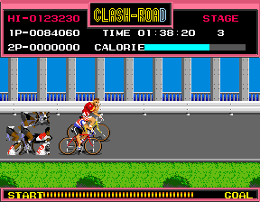 | Description | Occasionally a cycler who's graphics are garbled will come along, but the graphic corrects itself just before he exits the screen. | ||||