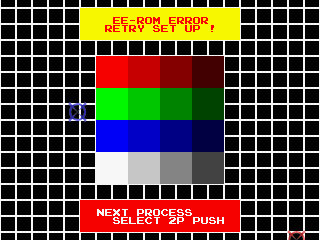 | Description | Attempting to calibrate the guns results in a 'EE-ROM Error - Retry Set Up'. You must remove the NVRAM file to continue, as the game will then continue to prompt you to calibrate the guns over and over again. | ||||