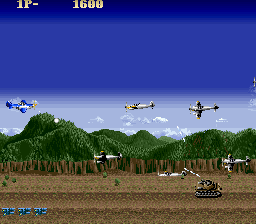 You can see enemy planes fly under the ground scrolling layer. Enemy planes must be in the same layer depth as the players plane. Only behind the first graphic layer of the scroll. It looks ok on 0.115. |