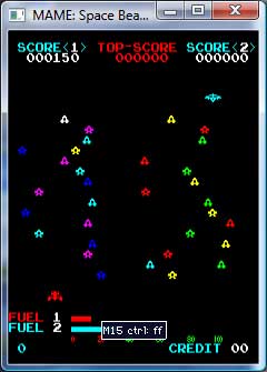 Most noticable on Space Beam, the dialog boxes on the other sets vanish after a while. Screenshot taken with Print Screen as MAME's F12 screenshots do not capture dialog boxes. |