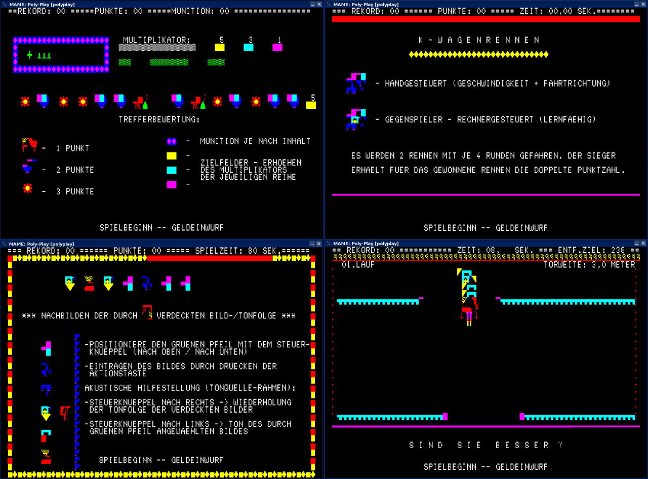 | Description | As soon as I start one of the Polyplay games, several small pieces of graphic (sprites?) look broken. This not only happens with the latest version of MAME, but I remember that this game did run flawless with older versions (pre 0.128 I guess). | ||||