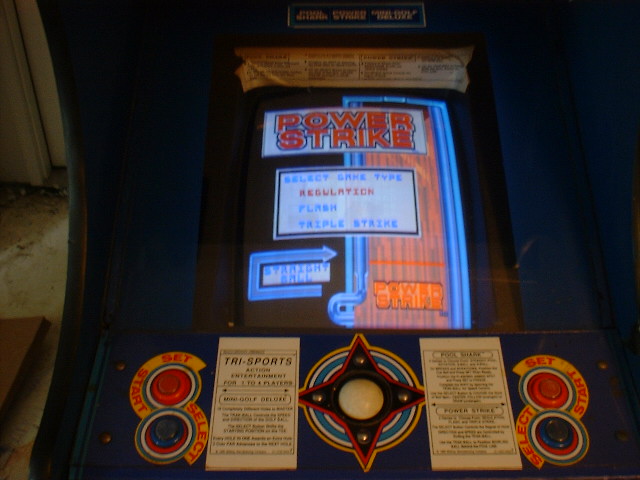 Here are comparisons from screen shots from an old auction (and one from the flyer) for reference. The owner stated that the pcb was in 100% working order but take that with a grain of salt I guess. There are some obvious differences, look how, for instance, the color of the pool table felt matches perfectly to lines on the Power Strike photo on the pcb photos, where in MAME the lines are teal. Of course it is possible that the camera played some tricks here but... Hopefully these will be useful. |
