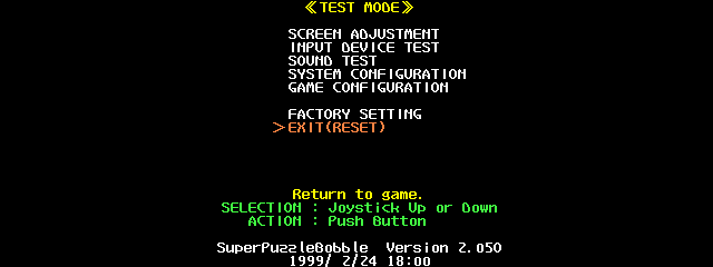 | Description | If you try to exit the test menu by pressing a button (like the instructions suggest), the game freezes and you must manually reset in order to proceed. I believe that's not correct, as the screen suggests that the game should automatically reset. | ||||