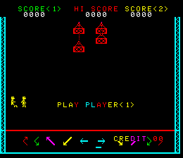 I've noticed this most if you insert a coin when the player dies in attract mode, however, I'm not convinced that's the actual trigger for the issue. When it happens the middle part of the play field is missing, the initial platform is missing, and there is a corrupt 'ghost' of the player in the start position. The game isn't really in a playable state, but you still lose your lives. |