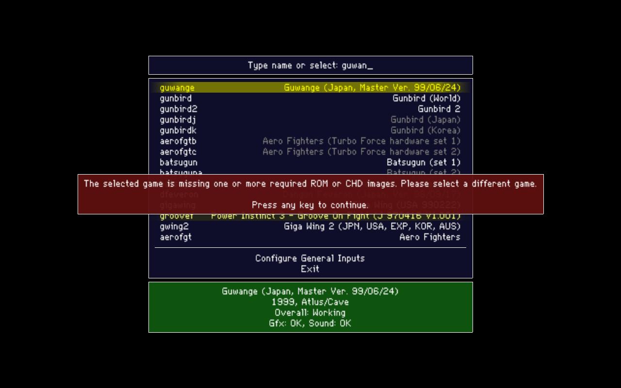 | Summary | 03643: Few number of games not loading. MAME states each game is missing one or more required ROM or CHD images. | ||||