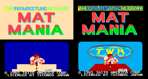 There was a small typo in the MAME 0.135u4 video update of the Mat Mania video driver, causes missing gfx and colors (see snpashots 0.135u3/0.135u4) Changed in src\mame\video\matmania.c line 158 from matmania_videoram3[offs] + ((matmania_colorram[offs] & 0x08) << 5), to matmania_videoram[offs] + ((matmania_colorram[offs] & 0x08) << 5), I have send this fix to MAME! |