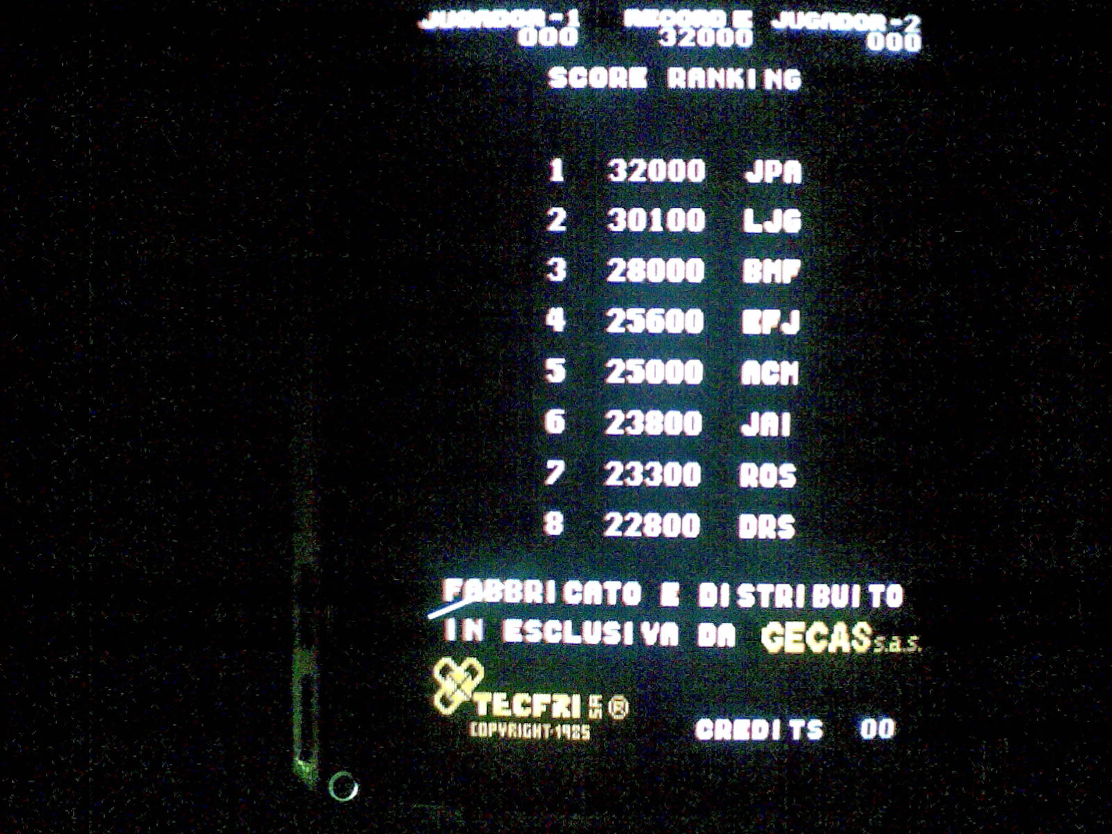 Mame displays the default hiscore all 0 but on the original pcb you can see names and points. Note the this pcb unlike the Tricky doc one which had the same problem doesn't have battery backed ram. |