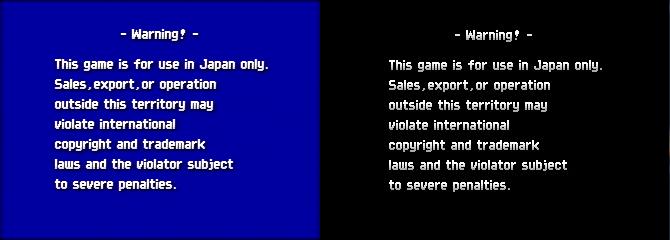 When the game boots up there is a sequence of screens: 1. rom check 2. warning screen 3. screen geometry 4. copyrights etc This problem is specific to the warning screen. The background is solid black and it should be solid blue. Attached is a picture showing a hardware video capture (left) and MAME (right). Framestepping a video capture of the pcb booting up, I can say that the background actually first turns blue for the last 2 frames during which the rom check text is displayed. |