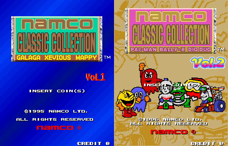 | Description | Artwork and title screen of both games is simply 'Namco Classic Collection', without the S. The same logo and spelling is also on the flyers and the game art/marquees. | ||||