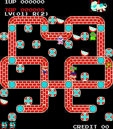 I think i got it. With ROM_CONTINUE for the first color prom we got the new screenshots. Notes to Smitdogg pictures: - In the first pictures you can't see the 'INSERT COIN' message. But if you use a paint programm with Brightness/Contrast changes you can see it. - If you think the big devil at the top has now wrong colors, then compare it with Smitdogg's first picture. It is in the second picture darker, but it is correct! Changed in drivers\zodiack.c lines 630-632 from: ROM_REGION( 0x0040, "proms", 0 ) ROM_LOAD( "moguchan.2a", 0x0000, 0x0020, CRC(e83daab3) ... ) ROM_LOAD( "moguchan.2b", 0x0020, 0x0020, CRC(9abfdf40) ... ) to ROM_REGION( 0x0040, "proms", 0 ) ROM_LOAD( "moguchan.2a", 0x0018, 0x0008, CRC(e83daab3) ... ) ROM_CONTINUE( 0x0010, 0x0008 ) ROM_CONTINUE( 0x0008, 0x0008 ) ROM_CONTINUE( 0x0000, 0x0008 ) ROM_LOAD( "moguchan.2b", 0x0020, 0x0020, CRC(9abfdf40) ... ) |