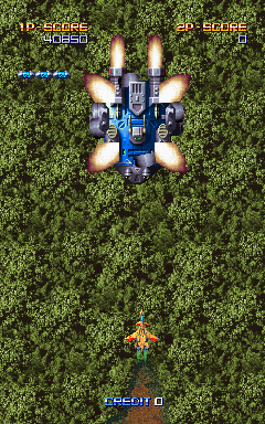 This is closed, but I've been doing some comparisons versus a video that someone captured for me. In the first two levels (of which I got a video) the only glitches evident are: (1) Boss1 - before taking off, the shadow is over the boss This is because of the lack of pdrawgfx or similar. The sprites are being interleaved with the layers, instead of being treated as a single-bitmap layer, drawn from start of the spriteram to the end, and then pixels interleaved with the bgs. (2) Boss2 - The reason the scrolling looks wrong is that the wrong background is visible. Is should be a blue tilemap with the boss and lower pieces on rails - the currently visible tilemaps (2 and 3) should have parted earlier in the level to reveal 1. This is a priority/scrolling issue, and not zooming. Looking at the code, and in the debugger - the issue is that the scrollx/scrolly (global x/y scroll) registers aren't being used when zooming is enabled (in addition to the offset into the bitmap and linescroll for the zooming tilemap). These are clearly used to pan the zooming doors at the end of level 2. This is also the case with the zooming title-screen logo, and explains why the road inexplicably disappears off the left of the screen during level1 - it should have panned off completely. (3) Later, there's glitches on level 4 (boss should go under bridge, between tilemaps 2 and 3. The sprites with a given priority actually have a lower priority than the bitmap. There's also an issue with the absolute sorting of the tilemaps versus just rendering them to the relevant priority level (e.g. what happens if all three tilemaps don't have a unique priority, they messup the relative priorities with the sprites) |