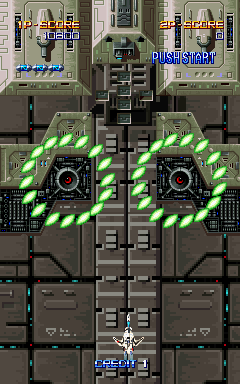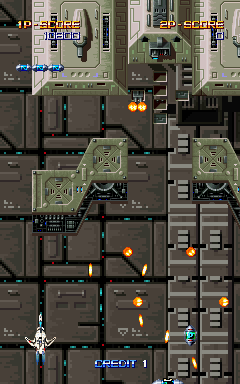 There are bad graphics with some of the backgrounds in the game (perhaps due to incorrect scaling?). This is most evident when the screen zooms to the bottom layer in the first level and on the 1st part of the 2nd stage boss . I've included screen shots below to help illustrate this problem. As for the sprites issue, this is really only noticeable on the first boss so far. In the previous versions, there weren't any problems but in the current versions of MAME, parts of the first stage boss are blacked out. |
