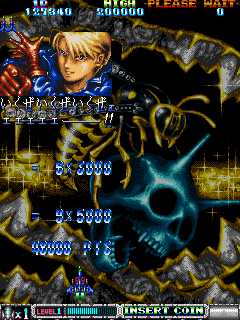 if you shift the sprite priority table one place ie static const UINT8 gp9001_sprprimap1[16] = { 0x04, 0x08, 0x0c, 0x10, 0x14, 0x18, 0x1c, 0x20, 0x24, 0x28, 0x2c, 0x30, 0x34, 0x38, 0x3c, 0x40 }; then that screen works.. seems to require that sprites render above the tiles which have a priority of 1 higher... will need testing tho, it's definitely a single vdp mixing issue tho, rather than a dual one. *edit* that does nasty things to a few screens in Batrider, so isn't a proper fix. |