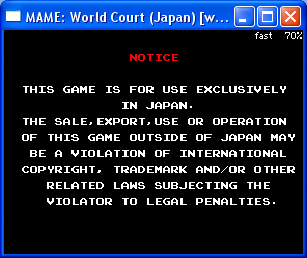 Since MAME 0.139u2 i got a performance regression in all Namco System 1 games. Best example is World Court (wldcourt), after the game start and pressing fast forward (Insert) i got only 70 % (340 % before) in the Namco NOTICE screen and then 650 % in the game (760 % before). |