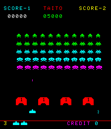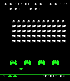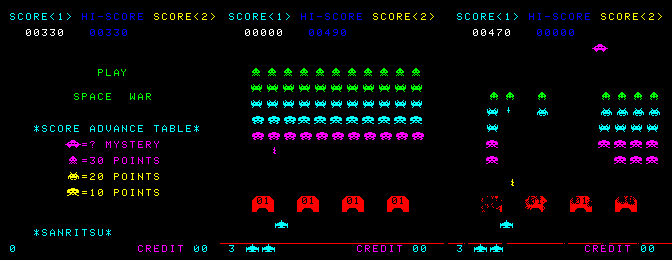 I used to play one of these back in the day, and it was green like in MAME. The sound effect of the flashing mothership had a different sound to the nonflashing mothership. Perhaps the machine in the video was a space invaders pt 2 machine that had a rom swap? Or perhaps the sanritzu roms had variations that we don't have yet. Who can know for sure. |