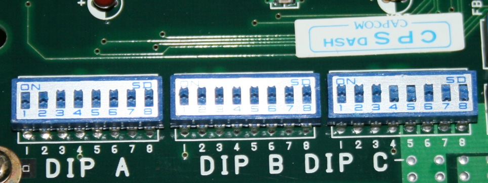 This is a video (9:30 length) with all dips off: http://smitdogg.mameworld.info/mametesters/sf2hfu.wmv Here is one (same length) with almost all dips filpped up (see attached picture). Flipping the others just seemed to either flip the screen or freeze it or run garbage down the side: http://smitdogg.mameworld.info/mametesters/sf2hfu-dipsup.wmv Running the 12 Mhz Dash A board. |
