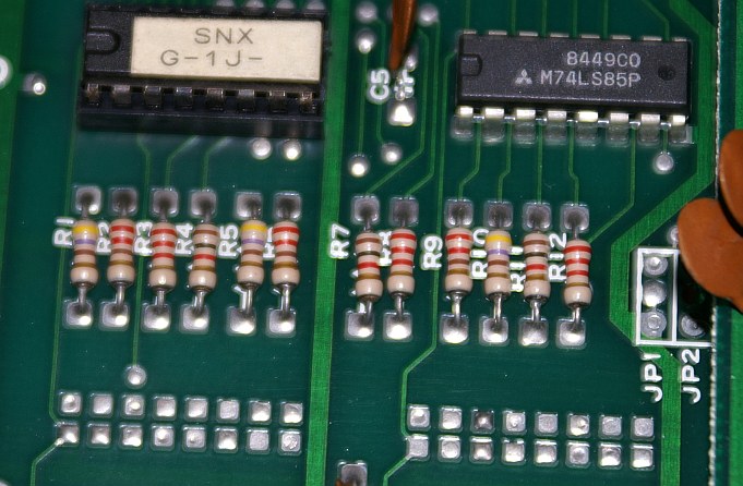 btw It looks better if you remove palette_normalize_range from m62 and increase contrast to 1.5 adding some pics and info by Stefan Lindberg from this thread: http://www.mameworld.info/ubbthreads/showflat.php?Cat=6&Number=117256&page=&view=&sb=5&o=&vc=1 This confirms that at least kungfum colors are not supposed to be washed out. It's easy to tell on the red "thomas" text. I'm disregarding the gfx artifacts here; lines like the kidniki hair sprite. The resistors on the pic are the same as in video/m62.c, so that part is at least correct in mame. |