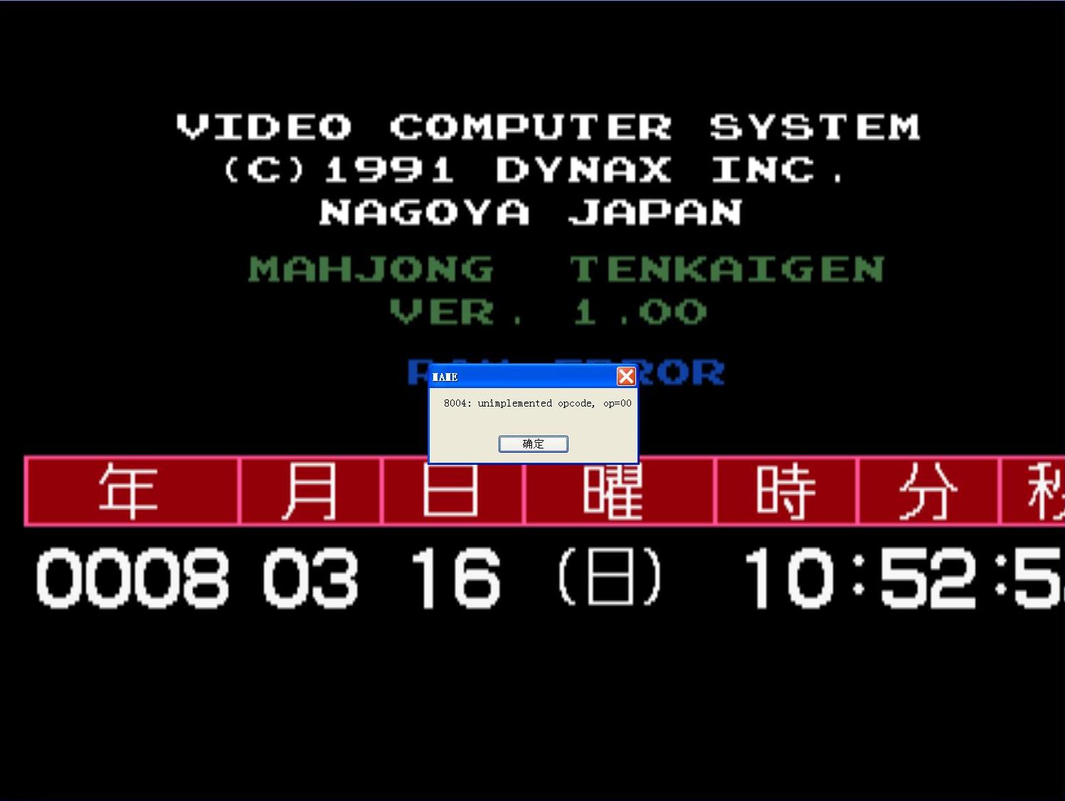 mame error report:8004: unimplemented opcode, op=00 |