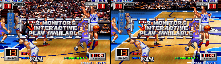 Sorry tried both versions and they work just fine. Using Vista 64bit and MameUI64. You can activate the 2nd monitor in the DIPs. Even if you choose one monitor the 2nd is showing cause it tells you to check DIPs. If you configure Mame to use 2 monitors each one will be displayed seperatly. |