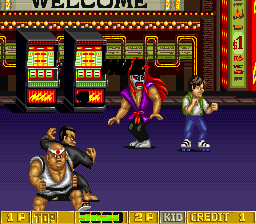 not a 1 frame glitch....it showed before the casino stage when we go down the slope but when the casio round starts it stayed there for a while and dissapeared when you move ahead in the mission......i have original b.rap boys pcb but it is the normal version not special version and this glitch doesn't exist in the original pcb of b.rap boys normal version....i played the normal version on mame also and this glitch is in normal version too......i did not use save states.