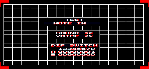 In my case, the soft reset worked fine; it's the initial raw boot without NVRAM that causes trouble. It will boot, hit the flashing "MEMORY RESET" screen then reset itself, after which it will proceed to the "TEST" screen frozen with "NOTE IN" displayed. Hitting the soft reset will cause the game to reboot properly, and the .nv file is indeed written correctly (it is also written correctly if you hard reset/exit MAME at the "NOTE IN" freeze, in fact.) It would seem that this game suffers from lacking a default NVRAM (though once it writes one for itself, everything is fine.) UPDATE: It would seem that ANY source of reset after a successful boot will cause the game to completely lose the plot; this includes the game-induced resets caused by the service keys (default 9, 0 and -) which brings the game to the TEST screen where it completely freaks out (and, in fact, actually corrupts it's NVRAM in the process....) Seems this bug may be a bit deeper than appears at the surface. (Having a blown NVRAM seems to cause the game to go loopy, causing a corrupted "TEST" screen and occasionally, a popmessage() will appear that the game is reading past the end of it's sound ROM.) It looks at first to be a soft reset (F3) issue, but as I mentioned, ANY reset source, including those that are legitimate to the game (try pressing 0 to look at the analyzer stats, it will reset when you release the key) will corrupt the NVRAM and cause the game to vomit all over itself until you do a hard reset, at which point it recognizes the NVRAM is corrupt, forces a clear, then goes to the "TEST/NOTE IN" frozen screen. Here, you can press F3 and it will work properly, and enter the game mode. After this, however, any soft reset source, even if you quit and return, will cause the game to bungle it's NVRAM and flip out. |