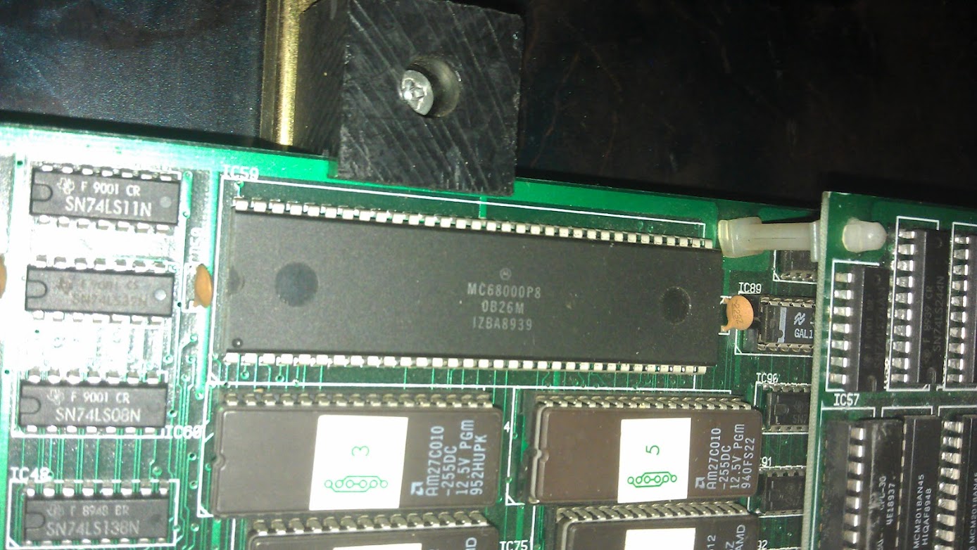 Hi! In DSC02796.JPG, look at the center under the Z80 CPU : XL2 -> 8Mhz. Near to the 68000 I've the XL3 20 Mhz? XL1 seem to be for the OKI cpu. In game I have a lot of slowdown, more than in the Tokib set in mame. If I've time for I will try to make a video... I have nothing to test 68000's speed... I'm looking for an oscilloscope ^^ |