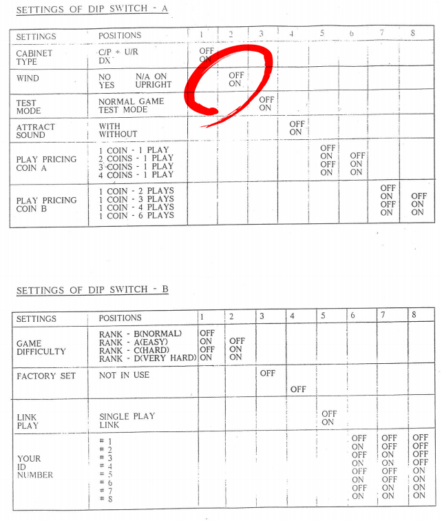 According to the manual, DIP A-2 toggles the wind blower on the cabinet, not a switch for screen flipping.