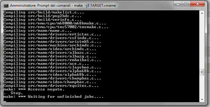 Swos (from MAMEItalia boards) reports that he can still reproduce the issue with 64bit compiling tools, but that it only happens with a -jN option. plain make does never give the ACCESS DENIED error |