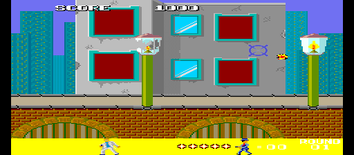 shortly After booting the game the words RAM CHECK are displayed in white letters. After a few seconds those words blink and change to red which seems like it fails the initial check? Then the entire screen changes to the color of red and it seems like it tries to re-run the RAM CHECK because the letters are white again, but with unusual flying letters on screen while this second check is taking place. If you have mouse 1 or enabled and move the mouse during both these checks, the crosshair moves randomly about the screen in an uncontrollable fashion. The same behavior does not happen if only pressing arrows on the keyboard. I haven't the slightest idea if this behavior is intended or happens on the real hardware. I'm just reporting what I'm observing running this game. |