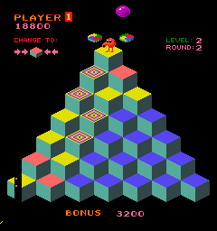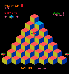 | Description | Playing sqbert during game play the qbert sometimes disappears and I also seen it turn into a disc. The Qbert also got stuck in mid air to the top right of the pyramid. | ||||