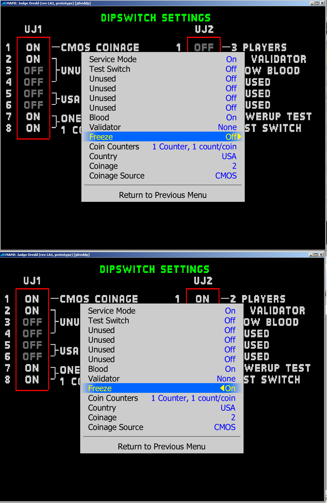 Playing around with the test menu and found that the freeze dip controls the player selection, and also freezes. being a proto it could be the way is should behave just wanted to bring it to attention. |