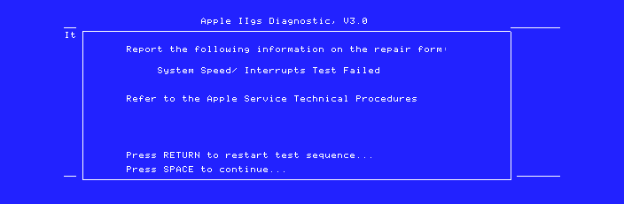 | Description | The apple2gs system failed on diagnostics test. | ||||