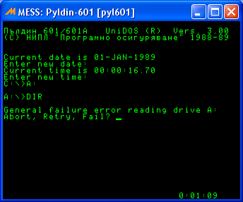 In other emu is possible to see contents of the mounted floppy disk with changing from C: to :A: and DIR! In MESS it fails, right? ... and this is a primary reason for opening this issue. (just remind the essential) p.s. Who can better known this machine than the one who wrote this driver for it !? p.p.s What I know... this machine has "file-compatibility" with IBM PC / XT ... it can read/write (exchange) data from same floppy (not execute because it has MC6800) ... so the floppy fix should be very easy. http://www.homecomputer.de/pages/easteurope_bu.html#601 http://macemulators.wordpress.com/2009/12/09/a-emu-for-the-russian-8bit-pyldin-601/ And there also exist another multi-emu that emulates all Pyldin-601 models: http://www.emulator3000.org/e3.htm |