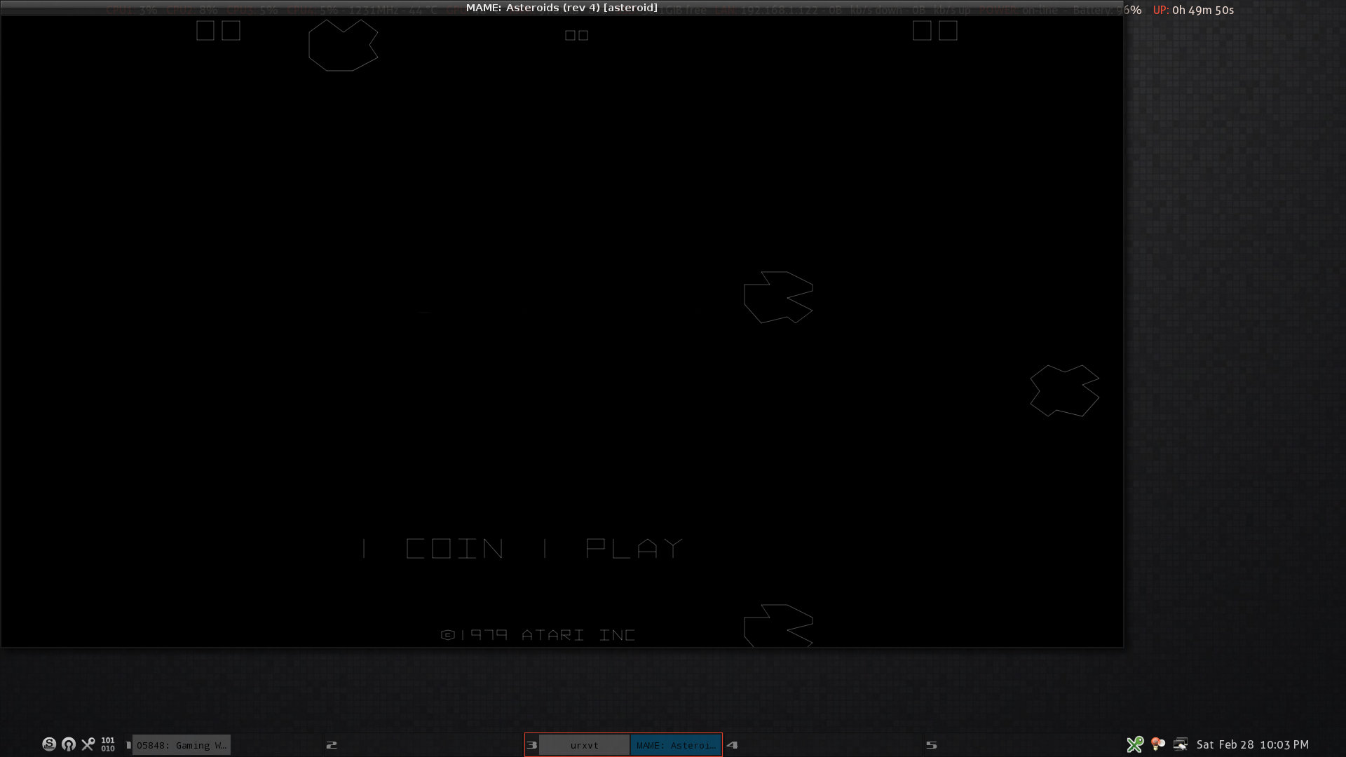 I took another screen shot, game_window3.jpg, showing mame being run from the cmd line, and this time I killed tint2 from the desktop to show you how the window looks, with the off center, with nothing else being displayed on the desktop to see it better.
